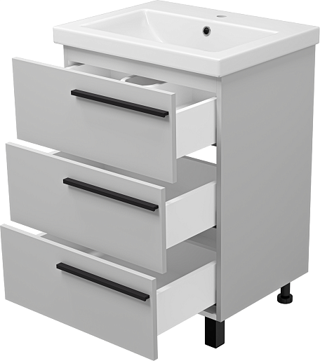 Напольная тумба с раковиной Misty Ненси 60 серая - арт. П-Нен-07060-503Я / S-UM-COM60/1-w.