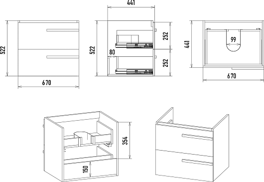 В комплекте: тумба, раковина, зеркальный шкаф, крепеж.
