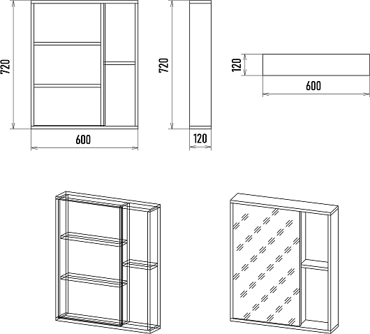 - Материал корпуса/фасада: ЛДСП / ЛДСП, зеркальное полотно.