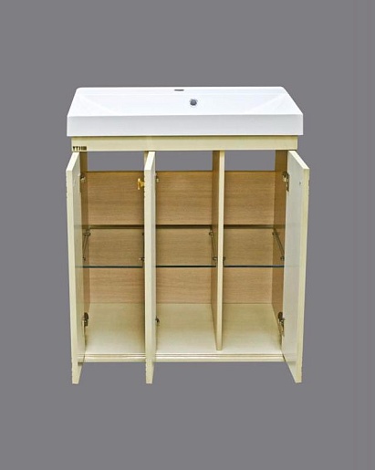 - тумба под раковину: 3 распашные дверцы, 3 золотистые ручки с кристаллами