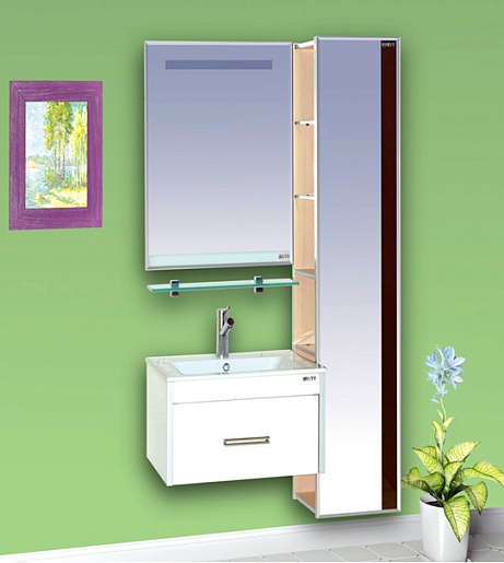 Комплектация: зеркало со встроенным светильником, стеклянная полочка.
