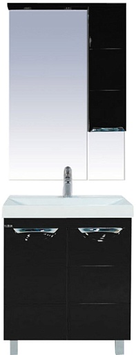 Комплектация: зеркальное полотно, козырек со встроенной подсветкой, распашной шкаф с вкладными полками.