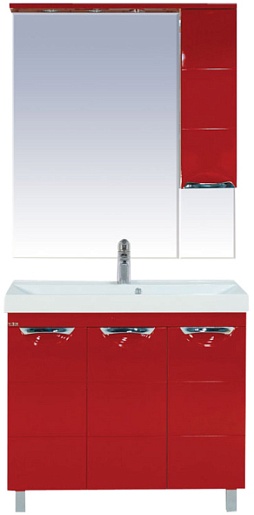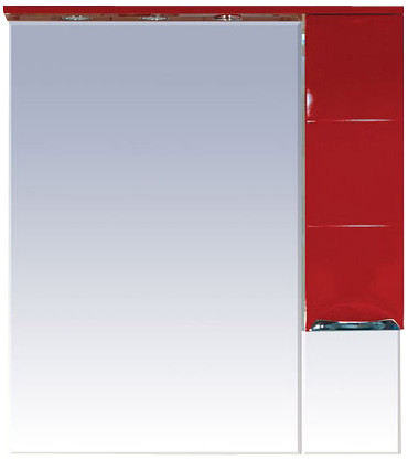 Комплектация: зеркальное полотно, козырек со встроенной подсветкой, распашной шкаф с вкладными полками.
