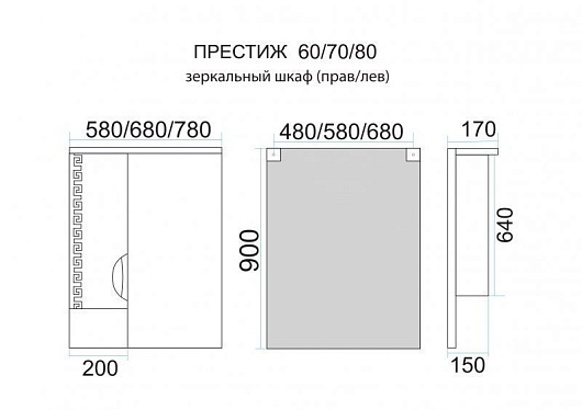 Зеркало-шкаф «Престиж 80» L, арт. Э-Прсж02080-013Л