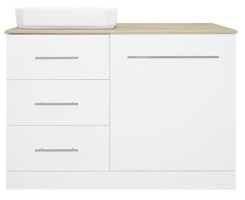 - Тумба под раковину респект 110: распашной фасад, доводчики, три ящика, фурнитура-хром.