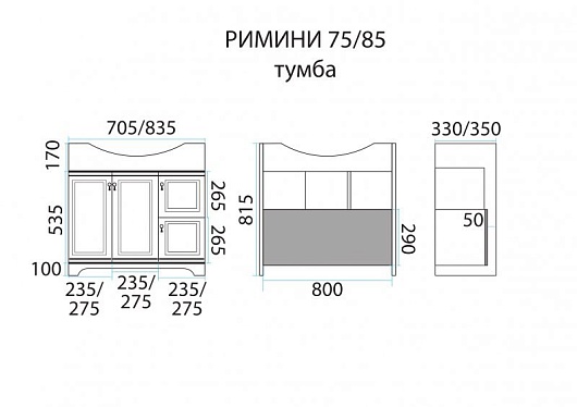 - Римини 75 тумба, два распашных фасада, ящики, доводчики, фурнитура-бронза.