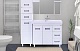 - тумба под раковину: 2 распашные дверцы, 3 выдвижных ящика, 5 врезных металлических ручки, вкладная полка, крепления и опорные ножки