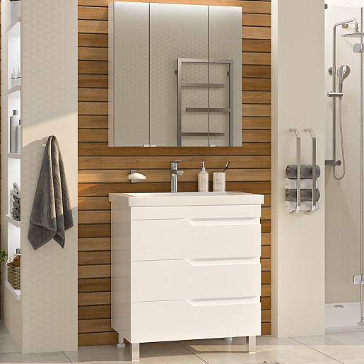 В комплекте: тумба, раковина, зеркальный шкаф, ножка (4 шт.).