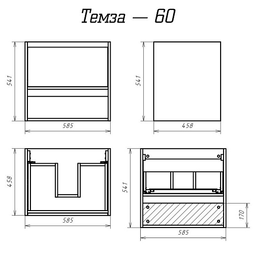 Темза 60 тумба подвесная, с одним ящиком, нишей/полочкой