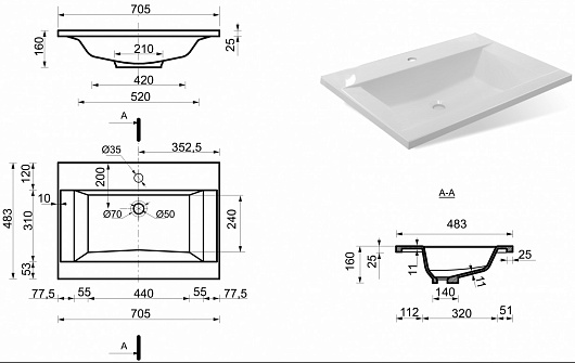 - Габариты корпуса тумбы (ШxГxВ): 700x477x726 мм.