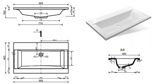 - С отверстием под смеситель.