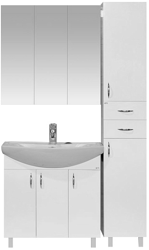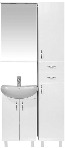 Описание: Пенал для ванной с двумя распашными дверцами и выдвижными ящиками. Монтаж подвесной и напольный, в комплекте крепления и опорные ножки.