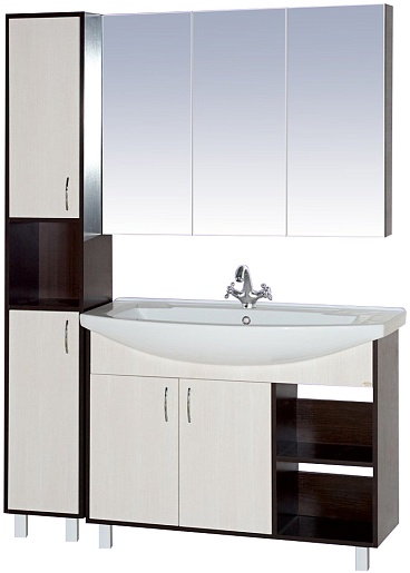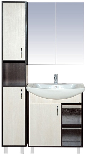 Описание: Пенал для ванной с двумя распашными дверцами и нишей по центру. Монтаж подвесной и напольный, в комплекте крепления и опорные ножки.
