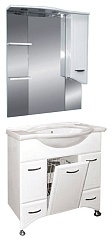 Описание: Пенал для ванной с двумя дверцами, выдвижными ящиками и бельевой корзиной. Монтаж подвесной и напольный, в комплекте крепления и опорные ножки.