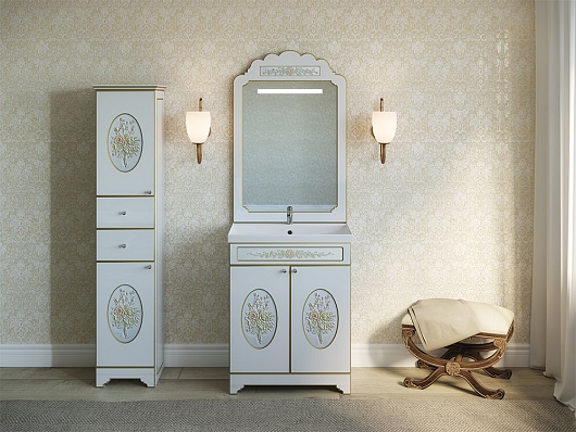 Misty Пенал для ванной Milano 35 белый патина/декор L