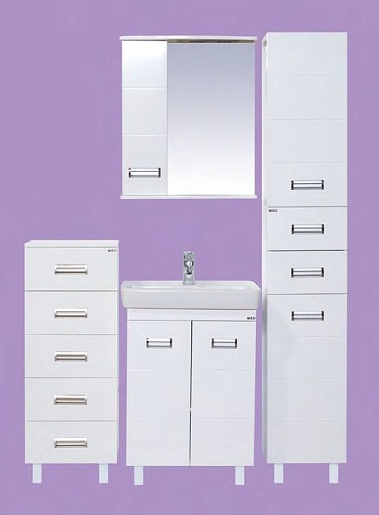Описание: Пенал для ванной с двумя дверцами, выдвижными ящиками и бельевой корзиной. Монтаж подвесной и напольный, в комплекте крепления и опорные ножки.