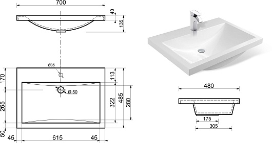 - Материал: литьевой мрамор.
