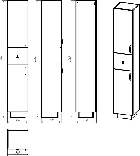 - Система хранения: 2 распашные дверцы, 1 ящик.