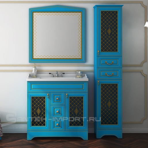 Misty Шкаф - пенал Ницца 40 R бирюзовый/патина