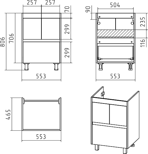 Misty Тумба для умывальника Алиса 58, 1 ящик, напольная