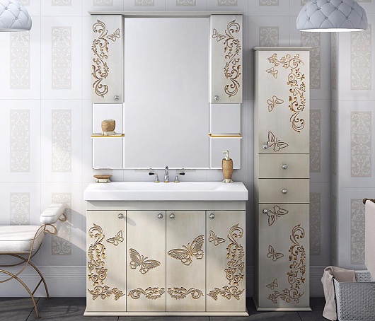 - тумба под раковину Misty Бабочка 120 бежевая патина: ручка - 4 шт., распашная дверца - 4 шт.