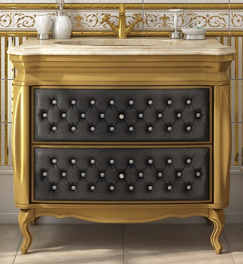 Misty Тумба для умывальника Bogema 100 черная кожа/золото