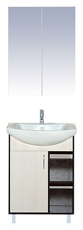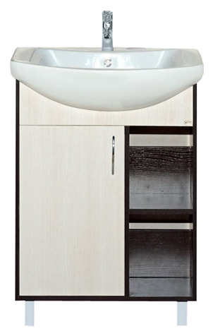 - тумба под раковину: распашная дверца, открытые полки, металлическая ручка, крепления и опорные ножки