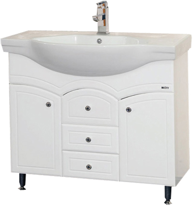 - тумба под раковину: 2 распашных дверцы, 3 выдвижных ящика, 5 металлических ручек с кристаллами, комплект опорных ножек и крепления