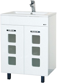- тумба под раковину: 2 распашные дверцы с вставками матового стекла, 2 металлические ручки, комплект опорных ножек и крепления
