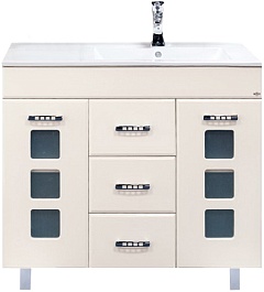 - тумба под раковину: 2 распашные дверцы с вставками матового стекла, 3 выдвижных ящика, 5 металлических ручек, комплект опорных ножек и крепления