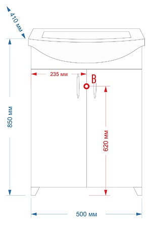 - тумба под раковину: 2 распашные дверцы, 2 металлические ручки, крепления и опорные ножки