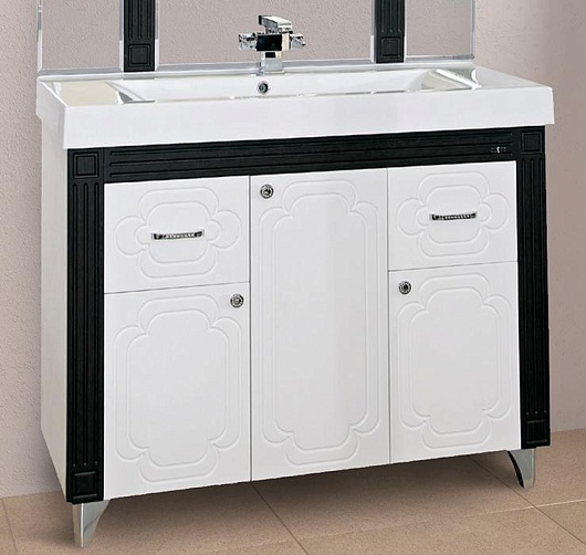 - тумба под раковину: 3 распашных дверцы, 2 выдвижных ящика, 5 металлических ручки с кристаллами, комплект опорных ножек и крепления