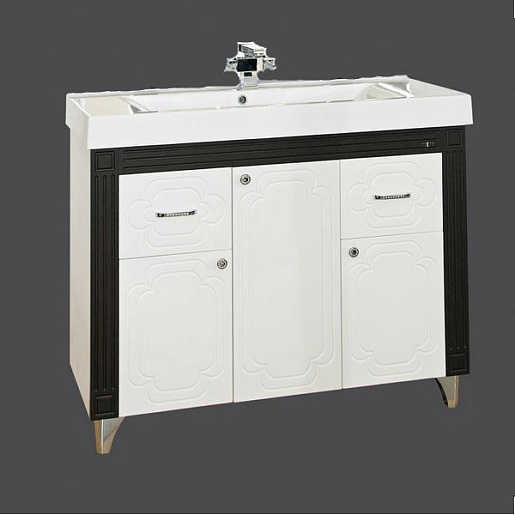 - тумба под раковину: 3 распашных дверцы, 2 выдвижных ящика, 5 металлических ручки с кристаллами, комплект опорных ножек и крепления