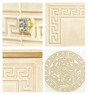 - тумба под раковину: 4 распашные дверцы, 4 золотистые ручки с кристаллами