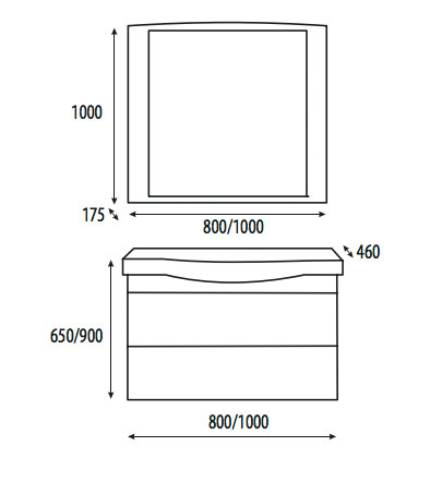 - тумба под раковину: 2 ящика, 4 ручки, доводчики