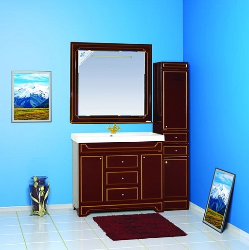 - тумба под раковину: 2 распашные дверцы, 3 выдвижных ящика, хромированные ручки с кристаллом.