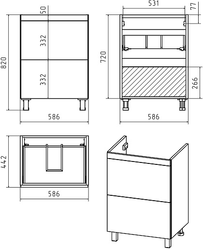 В комплекте: тумба, ножка (4 шт.), комплект креплений.