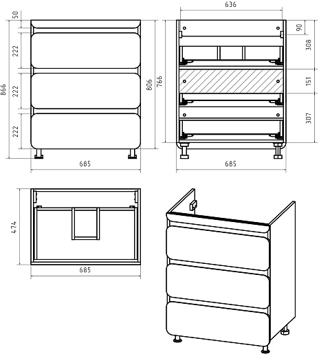 В комплекте: тумба, ножка (4 шт.), комплект креплений.