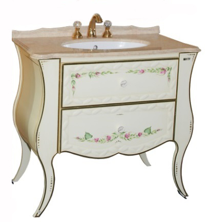 Тумба для умывальника Анжелика 100 бежевая с узором