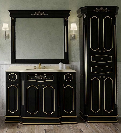 Тумба для умывальника Астория Gold 120 черная глянцевая