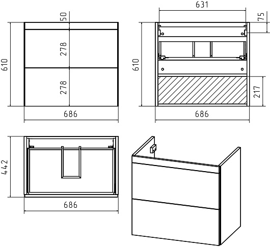 Подвесная тумба с раковиной Misty Атлантик 70 2 ящика - арт. П-Атл-01070-501П2Я / 4623723685666.