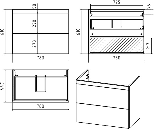Тумба под раковину Атлантик 80 2 ящика подвесная серый камень