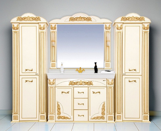 - тумба под раковину: 2 распашные дверцы, 3 выдвижных ящика, 5 бронзовых ручек с кристаллами