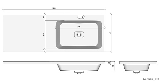 - Раковина из литьевого мрамора с отверстием под смеситель.