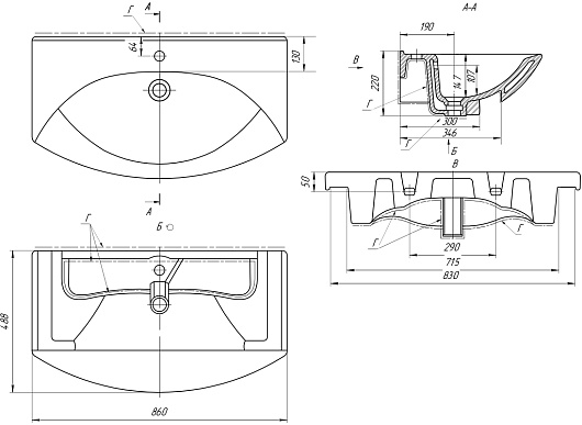 В комплекте: тумба, ножка (4 шт.), раковина, комплект креплений.