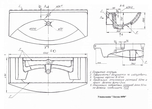 - раковина Дрея Лагуна 105, фаянс, цвет белый