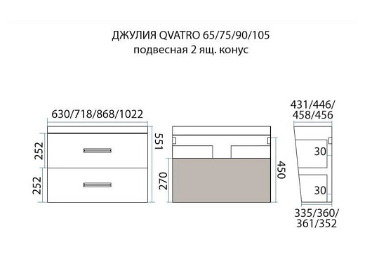 Тумба с раковиной «Джулия QVATRO 65 конус» Л-Джк01065-1310ПК2Я