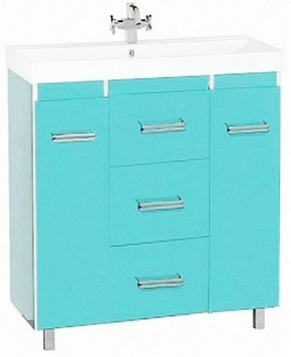 Misty Тумба с раковиной Джулия QVATRO 75, 3 ящика, голубая