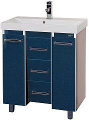 Misty Тумба с раковиной Джулия QVATRO 75 конус, 3 ящика, синяя