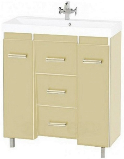 Тумба для умывальника Джулия QVATRO конус 90, 3 ящика, бежевая